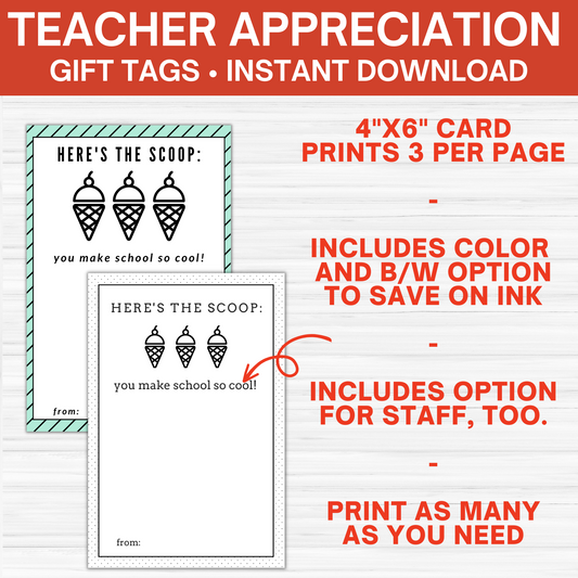 Ice Cream Gift Card Tags- Teacher Appeciation Gifts