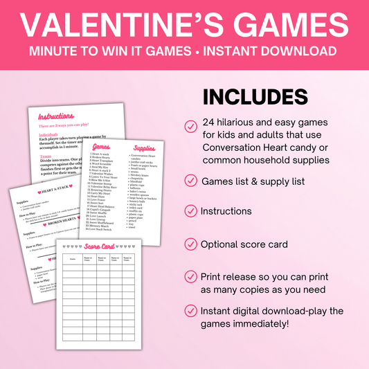 24 Valentine's Day Minute To Win It Games- Print & Play- Instant Download